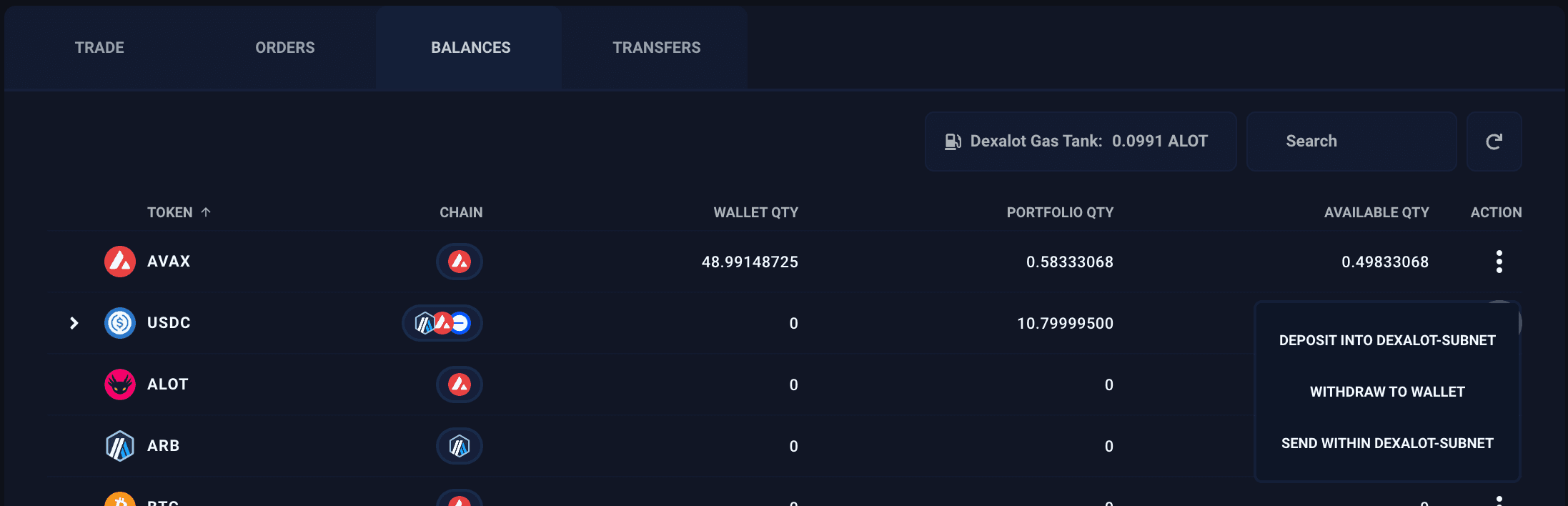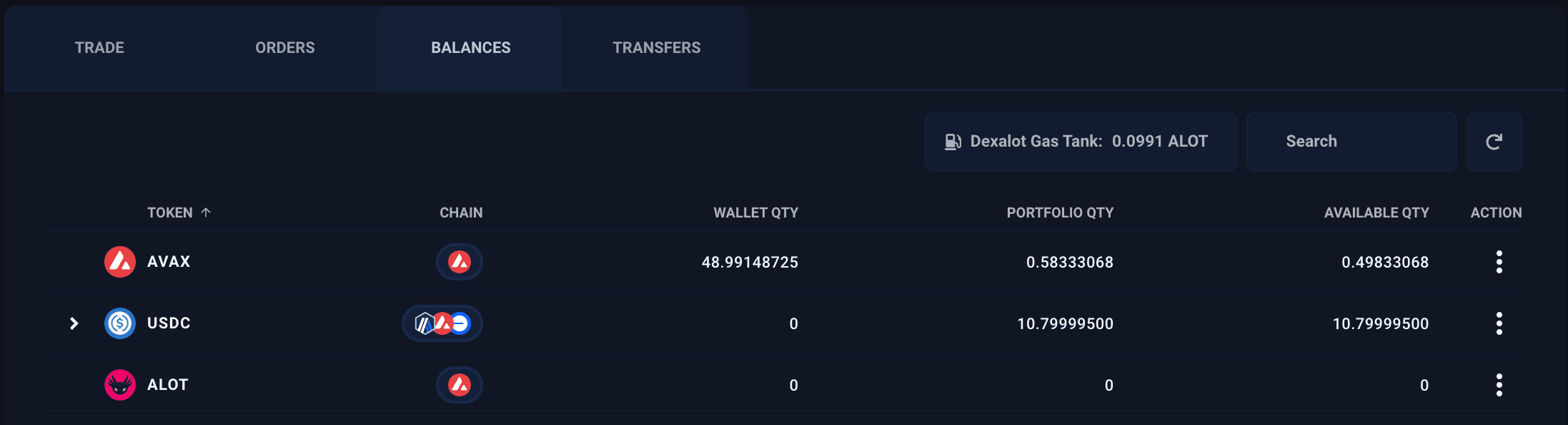 Head over to the Dexalot Testnet, connect your wallet (top right), and click on the Balances Tab in the Trade page. You will have to authenticate your wallet for the first time you interact with Dexalot.